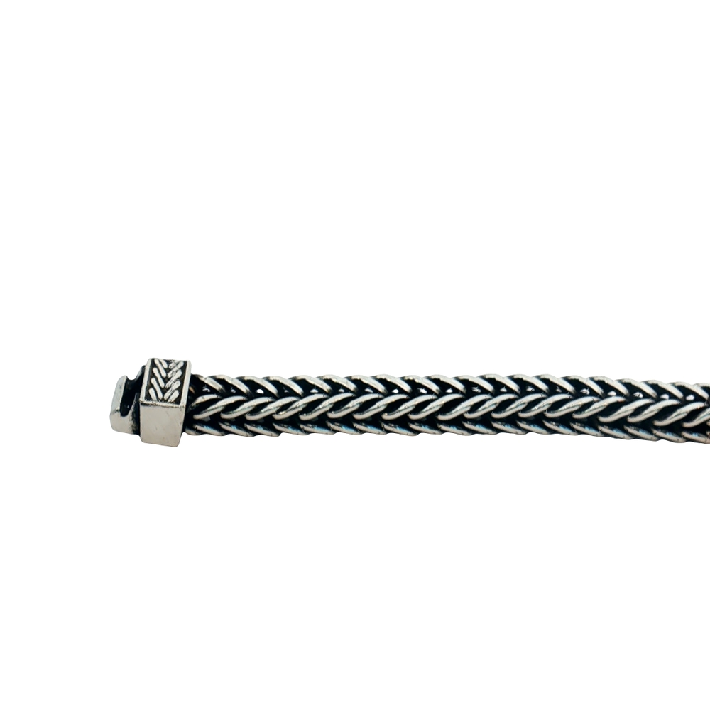 Il bracciale MINI SOSTANZA è in argento 925 brunito da uomo della Linea Essenza: è realizzato per chi ricerca uno stile preciso, elegante e allo stesso tempo dinamico e in equilibrio costante. La catena rappresenta il simbolo della spiga di grano (più fine rispetto al bracciale sostanza), iconica figura della Linea Dueaerre, la quale percorre ogni singolo angolo della creazione essenza. La chiusura a fibbia déployante in linea con l’eleganza senza tempo del bracciale, permette una chiusura impeccabile rendendo il bracciale rigido.
