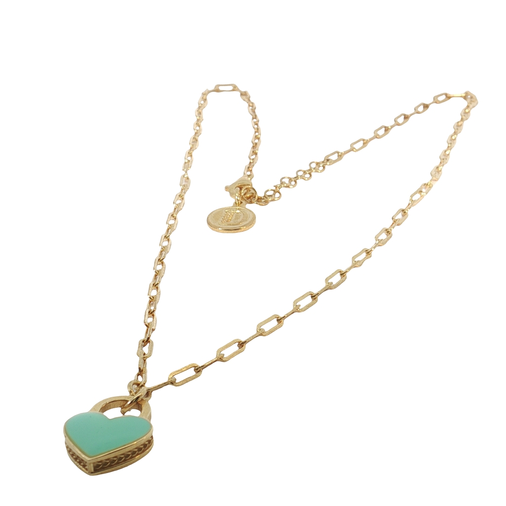La collana Promessa Cuore color Tiffany in argento dorato racchiude nella forma a cuore il desiderio e il sentimento dell’amore in tutte le sue forme. La collana è arricchita dal dettaglio della nostra “D” in argento decorata con l’iconico motivo a spiga di grano, simbolo indissolubile dell’operosità, l’abbondanza e la speranza per il futuro.