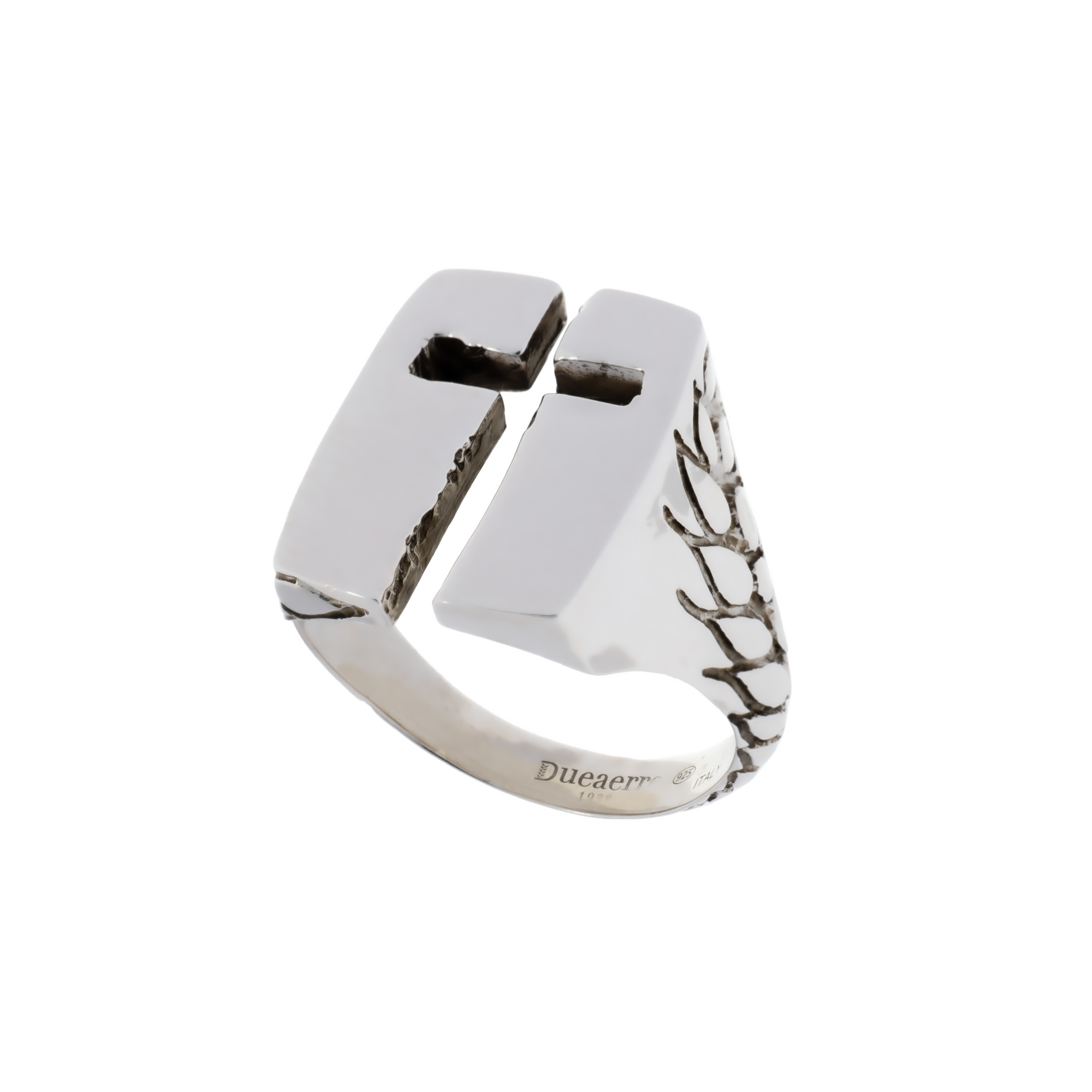 L’anello Chevalier ROCK CROCE MINI in argento ha la superfice superiore di forma rettangolare divisa a metà, all’interno della quale è rappresentata una croce. Infine un decoro con l’iconico motivo a spiga di grano, simbolo di abbondanza e speranza per il futuro, arricchisce i lati dell’anello.