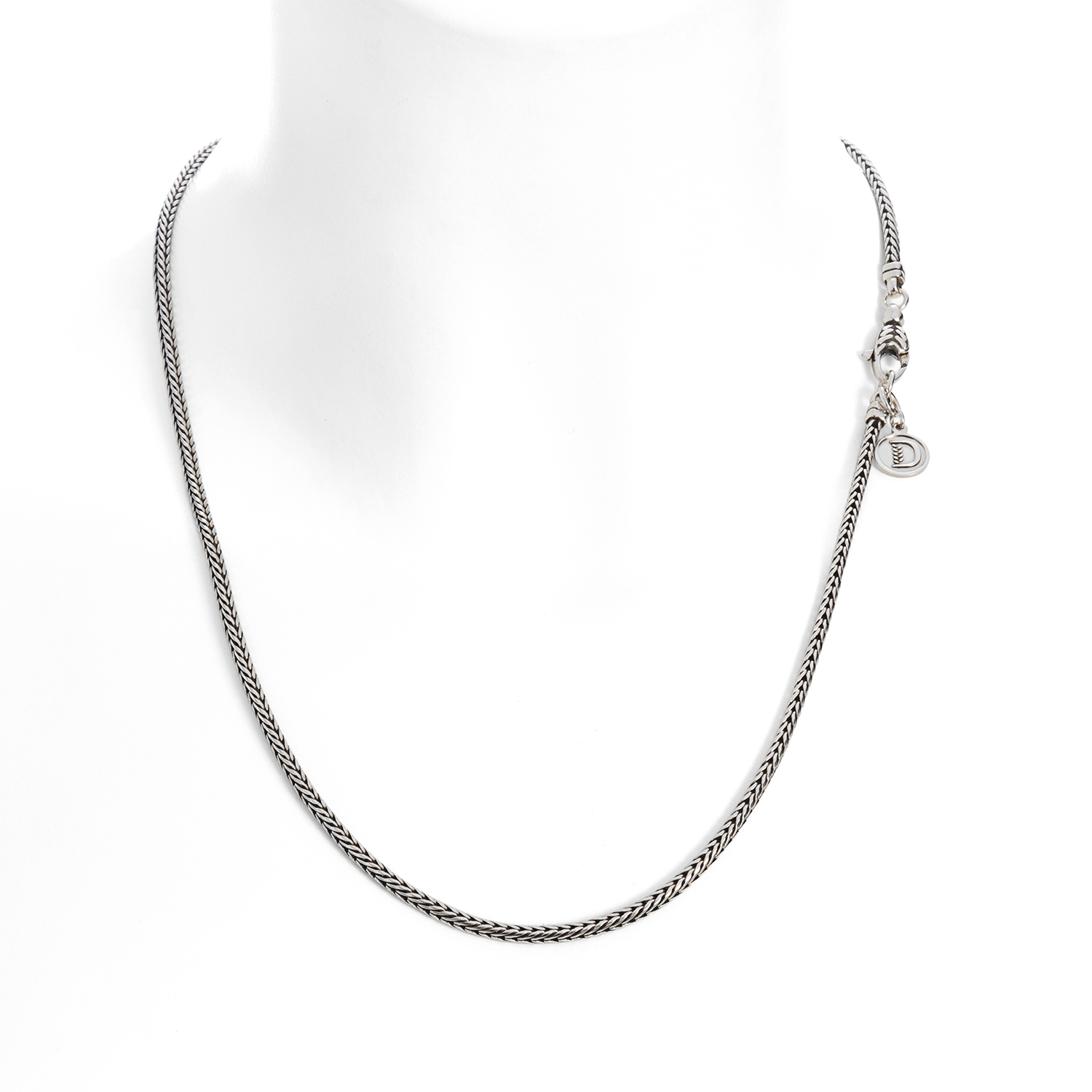 La collana Essenza in argento 925 brunito è l’ideale per essere raffinati e alla moda: la superficie è decorata con l’iconico motivo a spiga di grano, simbolo indissolubile dell’operosità, l’abbondanza e la speranza per il futuro. Il giro collo è formato da una catena a spiga di grano chiusa all’estremità con chiusura a moschettone decorato con la nostra iconica “D”.